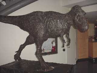 In the lobby of the CN Tower in Toronto they had a gift shop with lots of interesting things. This very realistic bronze statue was way out of the way and off by itself. It just didn't seem to belong. I thought that it may have been there to guard the fire extinguisher and fire hose behind it. In case of emergency somebody would have to climb past the T-Rex to get to it.