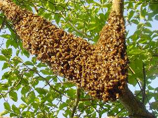 saw this swarm of honey bees all wrapped around a tree limb in a small
