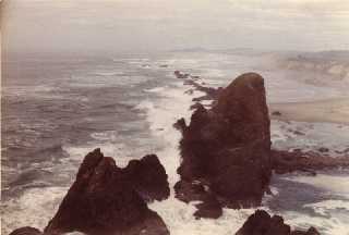 This is a picture from 1971 at the Oregon Coast, not very far from Newport. Seal Rock is named, obviously, for its shape. Not quite so easy to see in this picture but it does resemble a seal.