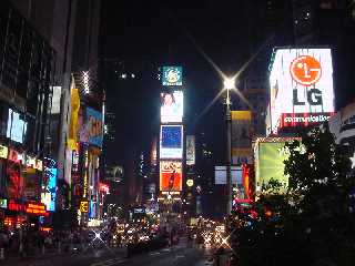 Deep in the heart of Manhattan is Times Square. An amazing cluster and conglomeration of advertisings. Huge light displays and enormous video screens light up the whole town.