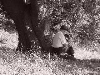 I have some regrets on my trip. Like this one. I regret that I did not walk over and talk to the old man sitting at the foot of this tree. I'll bet he could have told me a few stories.