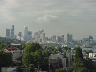 Okay, here, for a lack of pictures of people, I am going to probably be posting just random images of things and places. Like this one of downtown Seattle as I was riding into the city.