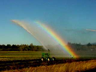 I thought this image was really interesting the way the rainbow was following the water from the irrigation equipment.