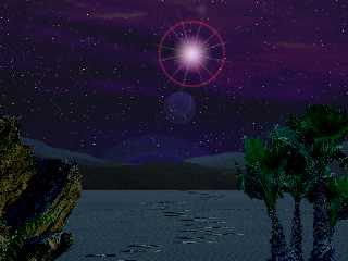 The various pieces of this image came from different parts of the country. The rock on the left and the hills in the background are all from the Blue Ridge Mountains, here in Virginia. The palm trees on the right are from Eloy, Arizona. The Sand with the footprints were from the beach in Panama City, Florida. The sky and stars are from several images and effects that I have played around with and the star is simply a lens flare effect which, as I positioned it specifically, gave the convenient glow on the horizon.