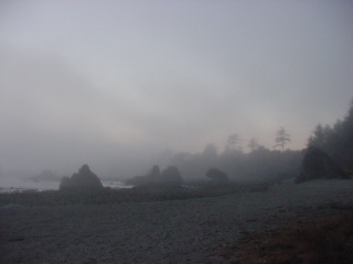 Northern California. Just across the border from Oregon into California is the small town of Crescent City. Right on the coast it is at the edge of the Redwood National Park. As I spent a little time at this small beach, just beyond the fog, I thought that there must have been an awesome sunset.