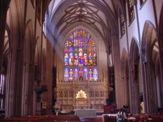 This is a shot from the inside of the Trinity Church in lower Manhattan in New York City. The stained glass artwork on the windows was incredible. I thought it was really neat how one, upper window was clear, which caused the suns rays to beam down into the church. Anybody sitting in the brightly lit area seemed to glow. Had there not been so many people in there at the time I might have been able to come up with some really neat images.