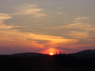 Today's image came from Newfoundland and probably the longest sunset I have ever had the pleasure to witness. As I rode up the east coast of North America I didn't even take into consideration that the days would be so much longer. I was keeping a careful eye on the sun as it set closer to the horizon and quickly pulled off of the road to capture it as it disappeared beyond the hills. I took picture after picture and waited, and waited. Not only did it seem to take forever but the sun also dropped at an angle, not really setting straight down. This caught me off guard for a few moments until I realized how far north I actually was. I put my camera away and headed down the road where I pulled off several more times and got more shots of this sunset.