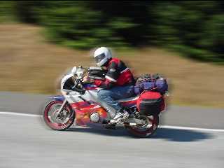Although the original image was taken at a speed of over 90 mph, the shutter speed was so high that the background remained very well in focus. As a matter of fact, the shutter was so fast that you could actually see individual links of the motorcycle chain in the original, full-size image. Now this is normally a good aspect and feature to be able to capture every moment of the action in clear detail. But what if you really wanted that look and feel of the action and speed?