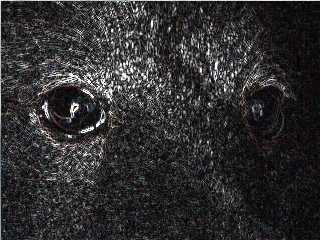 This is actually an enhanced close up image of my buddy, Zachary's face. Not even close to a wolf, Zachary is just a little Sheltie.