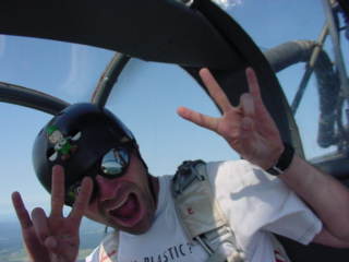 This is my buddy John Elmore throwing me the shocker from the inside of a helicopter, just before he jumped out.