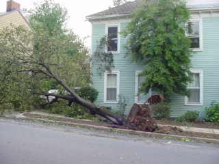 Here's another shot of a tree that had fallen over in downtown Fredericksburg. A pretty common sight around town, the day after hurricane Isabel blew through. Only blocking the car in the driveway, unlike many others, these people were actually quite lucky that it missed both the car and the house.