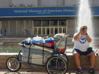Well, here it was, Karla's last day. I got up, earlier than I'd like to have , and went to the store to try to find a bottle of champagne and/or sparkling white grape juice. Karla wanted to celebrate the completion of her two and a half year odyssey around the country. Finally getting up to Washington D.C. I met up with her and a friend at the Arlington Memorial Cemetery. We walked all the way from there to the Capital building where she proceeded to open the bottle and celebrate.