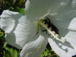 Here's a hibiscus with a surprise. I was actually trying to get a good shot of this big bumble bee as it moved and hid from view of the camera