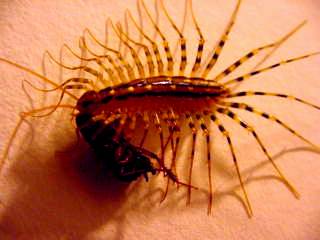 This creepy little arthropod is called a house centipede. Found lurking around in my apartment I was finally able to get a few shots of it.