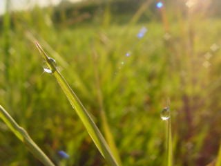 Early one morning, in Alberta, Canada, I got this shot of dew drops forming on a blade of grass.