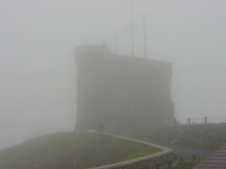 The Cabot Tower appears as a sinister castle in the fog. Sitting on top of Signal Hill, it sometimes overlooks downtown St. Johns, Newfoundland. Cabot Tower is also well known as the location of the first trans-Atlantic radio transmission by Guglielmo Marconi's, in December of 1901.
