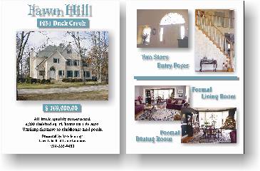 I have just begun working with some realtors in the area, providing a little graphic support. From things like this sample of a brochure I am also planning to create some web pages with interactive virtual tours of homes. Panoramic scenes of rooms throughout the house will allow a person to explore the home extensively over the internet.