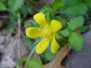 Here's a blossom from an Indian Strawberry plant growing right outside my back door. These plants produce small red fruit that look like tiny strawberries.