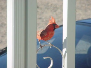 Also known as a Cardinal, this one here was enjoying itself in the mesquite tree outside. While I was trying to figure out how I could get a good close up shot, it jumped out of the tree and onto the framework right outside my window.