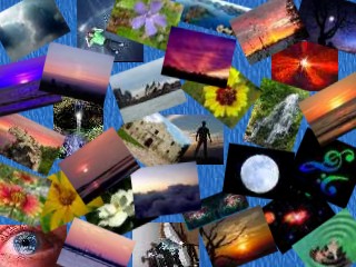 In case you haven't ever noticed, this is an image I made, some time ago, for the main page of my "daily pics" section of my web site. I wanted to create a little collage of a variety of some of my favorite images. So I took a background image that I had previously created from the water texture of Crater Lake, in Oregon. I then paste the various small images around on the background, as you can see. For the web page, I carefully and tediously outlined each image and mapped out each particular picture, linking it to the appropriate location on my web site.