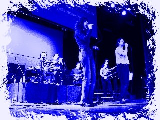 Pictured here is a shot of the Ni River band during practice one morning. Yeah that's me up front and on the right. The youth pastor had taken the photo and touched it up with a bright red-orange color. Then he posted it to the Ni River web site. www.NiRiver.org. So the credits for the original image here would have to go to Dave Schlee of Fredericksburg, VA. All I did was change it to blue.