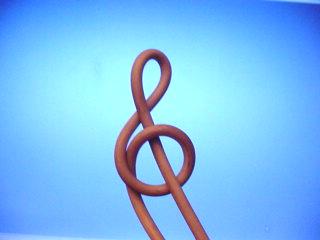 This was a rather interesting circumstance. As I'm often on the go, I usually take the power adapter and mouse, for my laptop, and wad it up and stuff it in my bag. Just yesterday I pulled out the mouse and found that the wire had become quite tangled. I untangled most of it, and as I was about to plug it in, I noticed something very peculiar. Well, actually I noticed something very familiar. The cord still had a small tangle right in the middle of it, in what looked like a perfect treble clef. I did not change it or reshape it in any way. I just held it up against the blank computer display and took a quick picture of it, as you can see here.