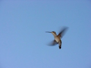 Obviously the hummingbirds are quicker than I am. But occasionally I can get a shot of them as their zipping around in the air. This one here was on approach and heading towards the feeder. I was really hoping to get a shot of one of them as it was observing me. They often hover directly over my head and watch me. But as fast as they are its very difficult to get that shot. Especially since they more often do that about a foot behind my head. Then, of course, as I turn around they zip off, laughing at me. (Or at least that's what it seemed like to me).