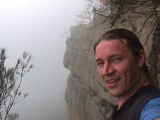 February, 1998. This is self portrait of me while following a very precarious trail, along a sheer drop-off cliff, to the bottom of the Wentworth Waterfalls in the Australia outback. Just a few hours outside of Sydney, this place was truly breathtaking. From the top of the waterfalls I could see that waster as it seemingly dropped off the world as it fell, out of sight, through the fog below. Then, finally at the bottom, it appeared as though the water was coming right out of the clouds, which, at that moment, were only about fifty feet above me.