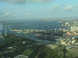 From the Center Point tower in downtown Sydney, Australia, this is a view of the harbor. Interesting, you can see the shadow of the tower in the lower right-hand corner of the image.