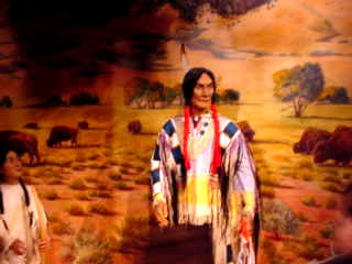 Actually this is not a picture of a real person. Under the St. Louis Arch there is a small museum with displays of American History. There are several wax figures such as this Native American Indian in front of a canvas painting of plains and buffalo.