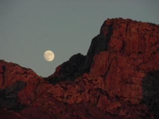 During the sunset one day, I got a few shots of the moon rising up from behind the Catalina Mountains and Pusch Ridge.