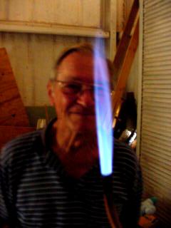 behind a blue flame, as we burn off some of the natural gas from a new process