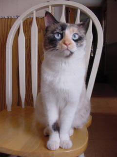 Still quite hungry he placed her down at the food where she began to gobble down the food. He had things to do so he left her there. She immediately left the food and found another closet to hide in. That's when the man realized that she was not afraid of him, but just afraid of being alone. He took her back to the food dish and sat down on the floor next to it. She ate like she had never eaten before. Then, after a few moments, she stopped and crawled into his lap and began to purr. But then she got up again and resumed eating. But every few moments she would return to his lap, then return to the food, until it seemed she had enough and she remained in his lap and fell asleep.