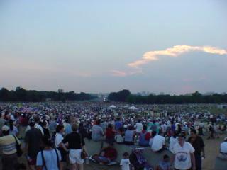 Here's another shot from the Mall in Washington D.C. on July 4th, 2002. This is a shot, zoomed way out from the Lincoln Memorial. Off in the distance you can see a growing thunderstorm obscuring the sunset. Luckily it never reached the area.
