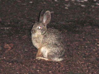 Actually this was just a plain psycho, suicidal rabbit that happened to run across the yard and sit directly in front of my car, right in my path, just as I was getting ready to leave one evening. Almost as if it were daring or asking me to run over it. But I refrained from doing so.