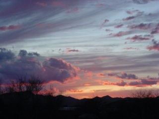 As I've said before, after taking so many pictures of sunsets, I can often look off to the west and see the conditions that will most likely make up a beautiful sunset. This one was no different. On my way home one day I watched as the sun was setting and noticed the way the cloud formation was and quickly made my way home. I took this shot and many that followed. This one here was actually some time before the sky lit up in amazing colors. But look to the lower cumulous (fluffy) clouds, and then at the upper cirrus (wispy) clouds. As the sun was going to set beyond the horizon it would pitch light up and reflect on the clouds above. First striking color upon the lower clouds, as you can see here, and then later, like a paintbrush, lighting up the upper clouds with incredible brilliance.