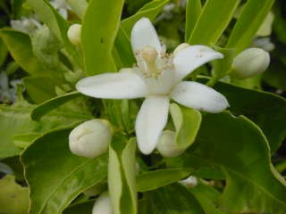 Or would that be a special orange blossom? Oh well. Whatever the case may be, this is a blossom from the orange tree right out of my back door. The citrus blossoms have a very strong and sweet scent to them and all seem to look very similar as we have grapefruit and lemon trees that are currently covered with them as well. And of course the honey (killer) bees seem to enjoy them quite a bit also. No worries though, these bees don't appear to be any threat without their big swarm of "compadre's" to back them up.