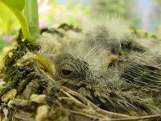 I'm not sure if any of you recall one of my favorite shows when I was younger. But I thought that this little baby bird looked very much like a baby "Gonzo", one of my favorite characters. This is from a tiny nest in the lemon tree here in my uncle's yard. One day, while the wind was blowing rather hard, my uncle showed me this nest with the mother sitting in it. She was very small, about the size of a finch, and was hanging on for dear life as the wind blew the small tree back and forth. No matter how close we got to her, she would not leave the nest, apparently protecting the eggs from falling out. Several days later I went out and got a few shots of the new little birds in the nest.