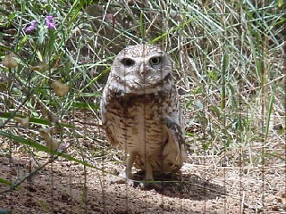 As I was walking around the desert museum I got this strange feeling that I was being watched. I turned around and here stood this owl, looking directly at me. Not on some branch or limb or perch. But just standing on the ground, looking right at me. I moved in a little closer. Yes, it was looking right at me. Not flinching, I thought it might have been a fake, like the bats I saw prior. But just then somebody else made a noise and it turned its attention to them for a moment. Then it turned it back to me. It was real, alright. It was alive. And it was looking right at me. And it definitely seemed to have an attitude. I took several more pictures of this amazing creature, wishing that there would be a way to help it in some way. Because, although we cannot really determine an animal's emotions, it did not look happy.