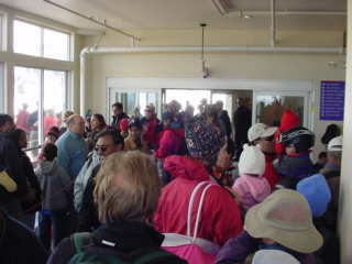 I had gone a little later in the day and, after taking my pictures and looking around, I had to wait with the hundreds of other people. I felt like I was going to be "tram-pled" by all the people trying to get on the tram to go back down the mountain. All these tram people were congested and trying to stay warm by getting inside the tram waiting area. Then some other tram people were trying to cut into the line. One young man was only wearing shorts and a t-shirt, and flip-flops. Shivering and all full of attitude, he tried to talk this gentleman into letting him cut in line as we were working our way into the warmth of the building. As the elderly man in front of me refused, the young man spouted off some profanity and went back to the end of the line, out in the cold.