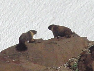 As I was waiting for a tram, at the top of the mountain, I noticed these very large rodents scrambling all around. I was quite surprised as the only rodents I have seen that large were beavers and musk rats. After reading up on them I discovered that they are one of the largest of the rodent family and they live in the higher elevations and mountainous regions and they like to stay warm by sunning themselves on the rocks. Well, all I can say there is that they must not be too bright either. If you don't like the cold, move to where its warmer. Possibly another candidate for Darwinism, we may also see these creatures get put on the endangered species list some day. Right next to the college kid in shorts, t-shirt, and flip-flops.