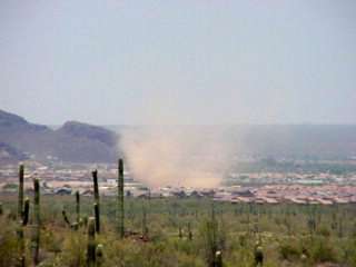 Dust devils like these actually happen all over the country. Although they are usually not as noticeable without the loose dust and debris to pick up. I recall one several years ago that blew through our landing area at the Skydive Orange drop zone, in Virginia, and almost took out about a half dozen skydivers as they were landing. Nobody was injured, but it did leave a bunch of people doubting their canopy flying skills. One individual's canopy jerked and he was pulled about ten feet back up into the air before dropping and tumbling back down to the ground.