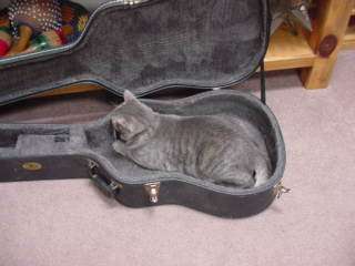 While house-sitting for a friend some time ago, their cat, Einstein grew a fondness for the soft inside liner of my guitar case. Now considering the color contrast, could we possibly figure out why? Cats do sometimes like to pretend that they are invisible. Mine tends to go into "Stealth" mode quite often. Then that's usually right before she switches over into "Battle" mode. And I end up being the recipient of the assault.