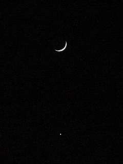 While this image may seem very quaint and primitive, it is an actual picture of the Moon and Venus in the sky. This past week it looked very cool after the sun had set. I did get some other shots of this view with some variations of light saturation, and you can see the part of the moon that is still in the earth's shadow. Maybe I'll send it next week. Well, that is, if nothing more interesting comes up.