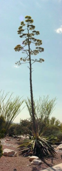 tall, 25 foot stalk, with big bright yellow flowers on it.