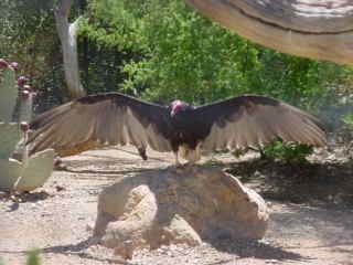 While at the desert museum I got this shot of a turkey vulture, or buzzard as it was always referred to when I was growing up. I had previously got an awesome shot of a group of them down in Baja, with their wings all spread out. I haven't heard any firm reasons why they do this but I would presume that it would be too cool themselves off. In any case, it sure makes them look rather menacing.