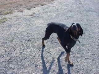 This is actually Larry's dog, Cowgirl, and yes, she is quite the silly little dog, but she is very affectionate and playful. She loves to go out and chase the horses across the field. At first I was a little concerned until I noticed that the horses really seemed to get a kick out of chasing her back across the field, and they all ran and played together for a while.