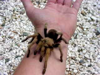 Yep, you guessed it, that's a real live tarantula crawling up my arm. One with a leg span of about 5 inches.