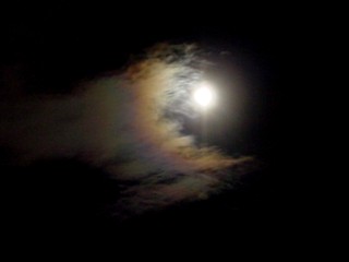 As I stated in Wednesday's posting, the small cloud grew and eventually engulfed the moon. Like this picture here, it appeared as though it had an agenda as the creepy fingers of the clouds gradually drifted around the moon and proceeded to consume it. All the while, reflecting this strange colorful spectral luminescence.