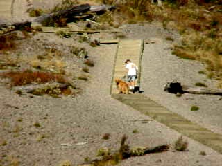A somewhat humorous moment came while I was visiting the Mt. St. Helens area back in 2002. Here, right next to this parking lot was a primitively made wooden and gravel staircase that extended up to the top of a small peak, to give a better vantage point to the volcano and surrounding area. I made the trip up there and took numerous pictures, myself, and let me tell you, it was quite the hike up to the top, and I was very winded. Okay, maybe I'm just a wimp.
